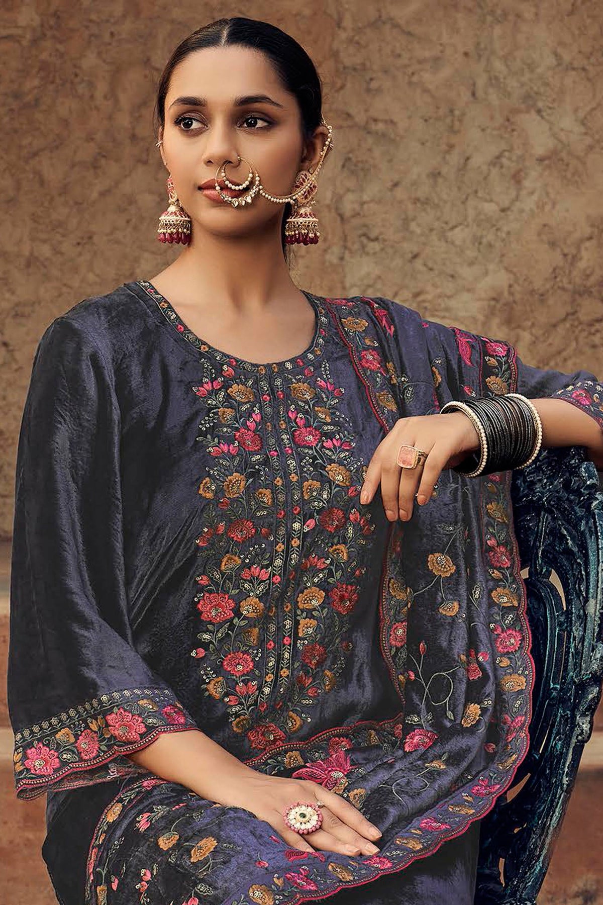 - Dupatta:- Pure Viscose Velvet Embroidery Work